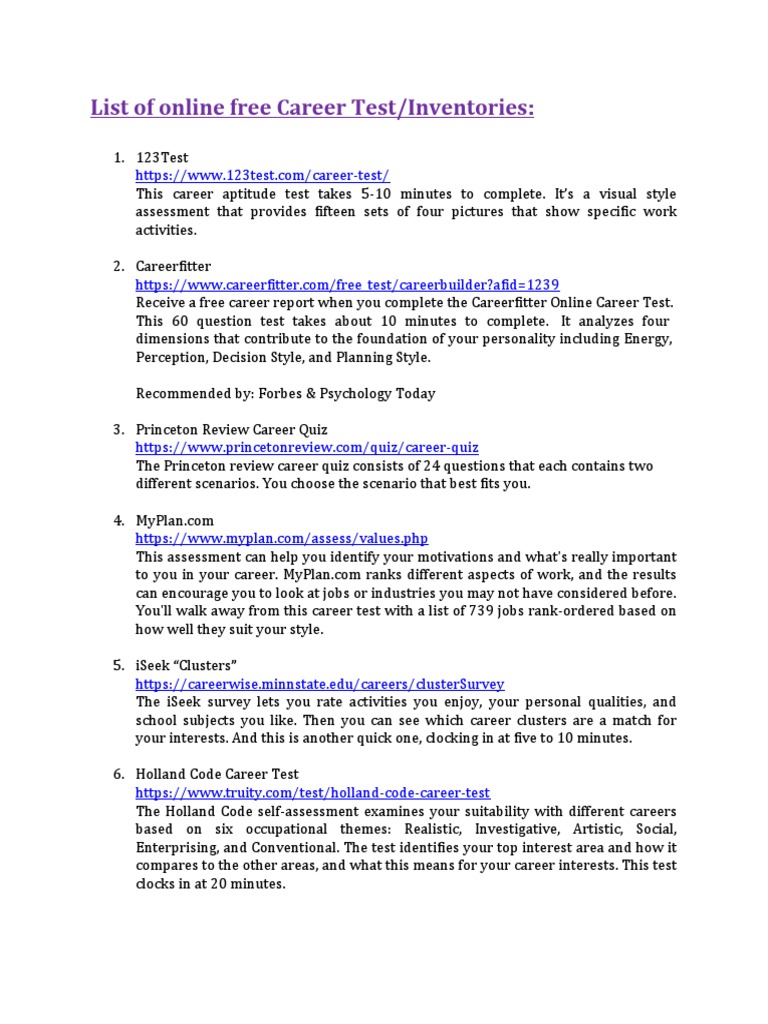 List Of Online Free Careertest Pdf Human Development Human Nature